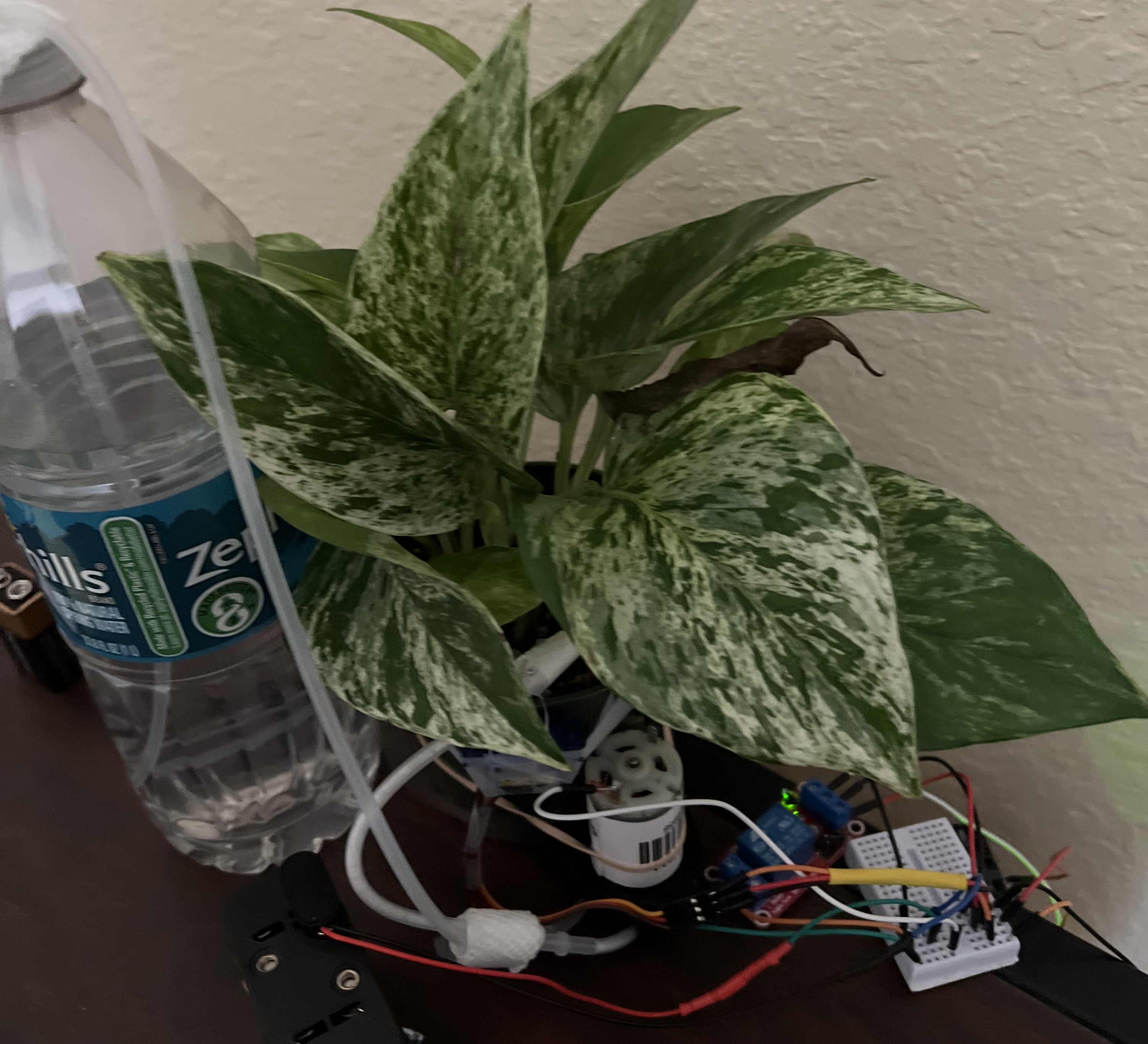 Using an Arduino and some hardware components, once a week this would activate a pump and servo to act like a sprinkler and water my plant.